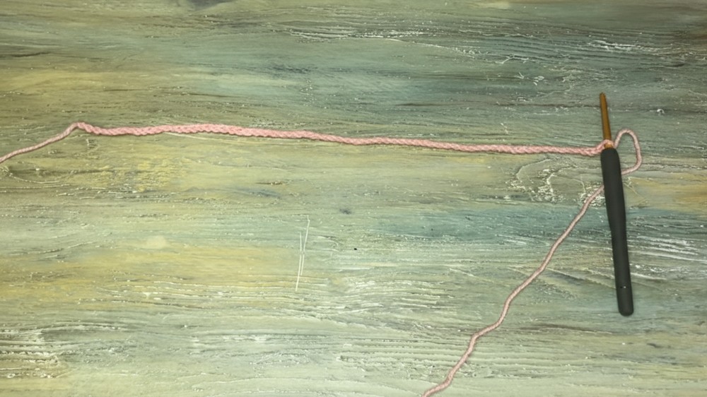 - Crochet 69 chains for the base of the beret. The chain length should measure 33 cm.