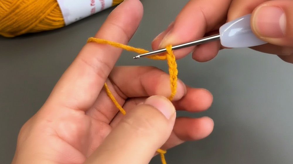 - Insert your hook into the second chain from the hook, yarn over, pull up a loop, then yarn over and pull through both loops (single crochet).