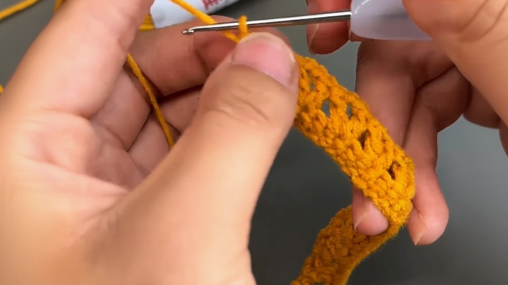 - Repeat the V-Stitch pattern across the row.