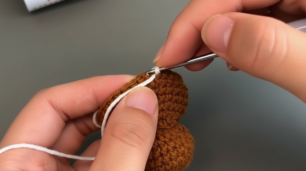 - At the end, slip stitch to the final double crochet, chain 1, leave a long yarn tail, and cut the yarn.