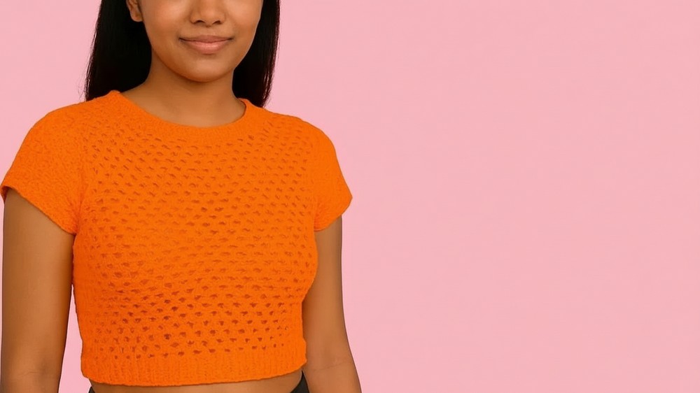 You have successfully completed a trendy and unique Granny Square Crop Top. You used fundamental crochet stitches, mastered complex shaping through measuring and selective stitch placement, and finished the garment with professional-looking ribbing.