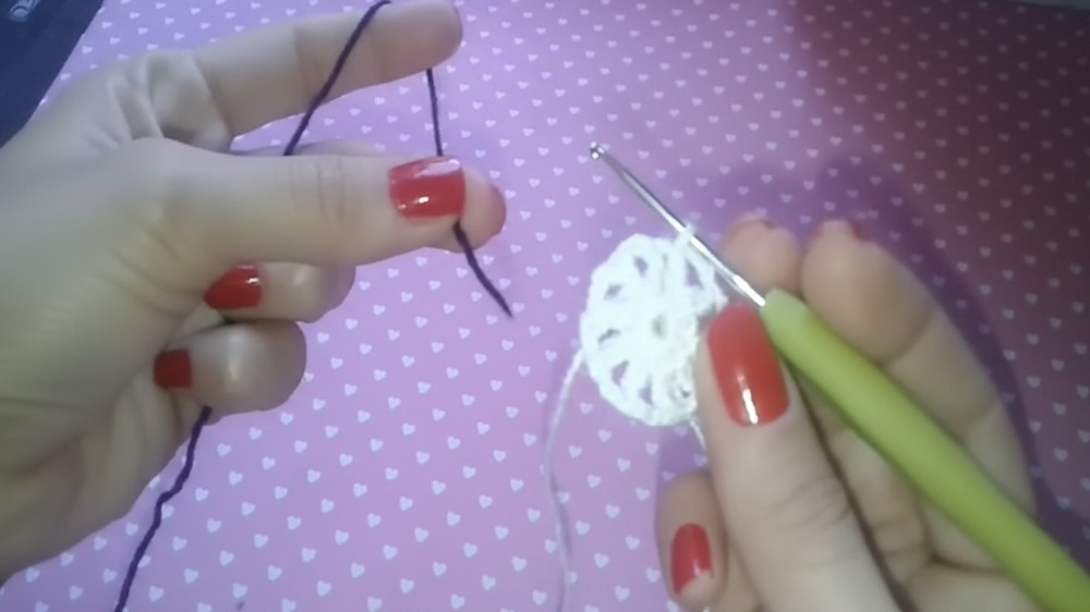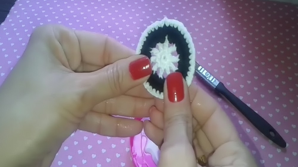 • Color Change Management: You should not cut the white yarn after the first round, as you will pick it up again later for the final edging. This prevents you from weaving in unnecessary ends.