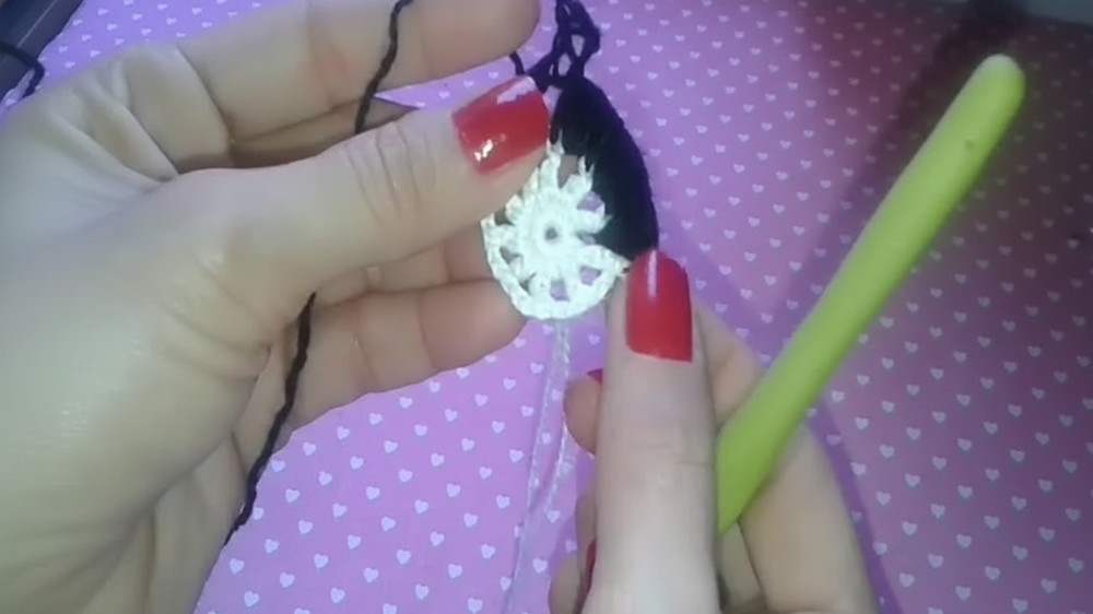 • Finishing Tension: When working the final slip stitch to close the white DC round, you must insert the hook into the third chain of the starting Chain 4 to ensure a neat, seamless join.