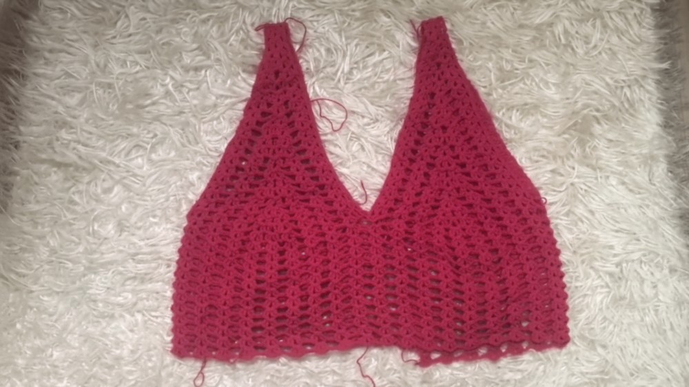 Custom Edging: The tutor suggests looking at her other videos for "edge lace" patterns to finish the straps and neckline for a more polished look.