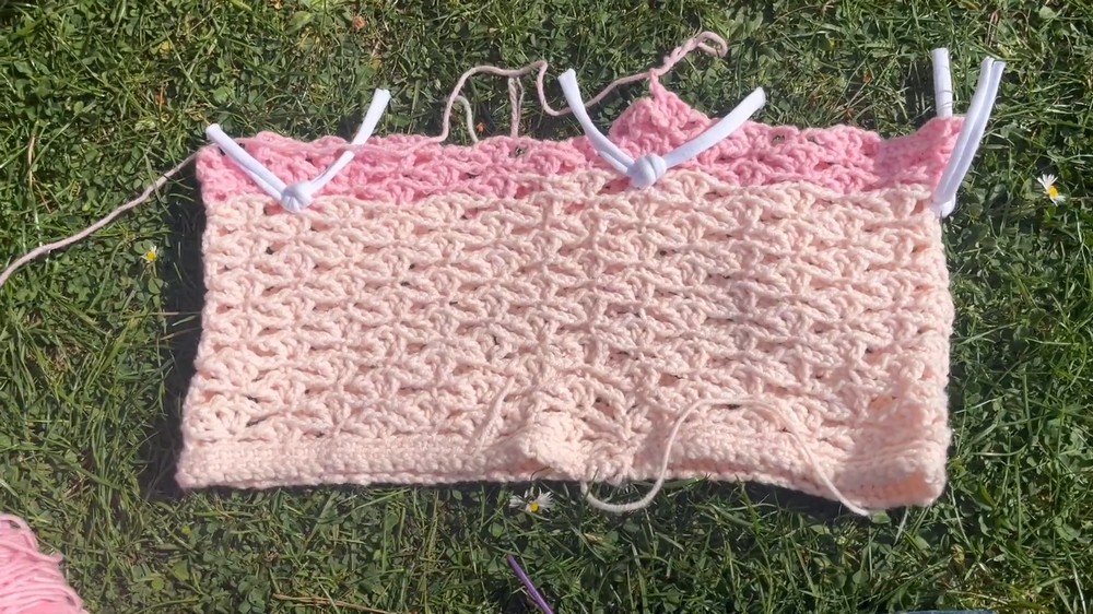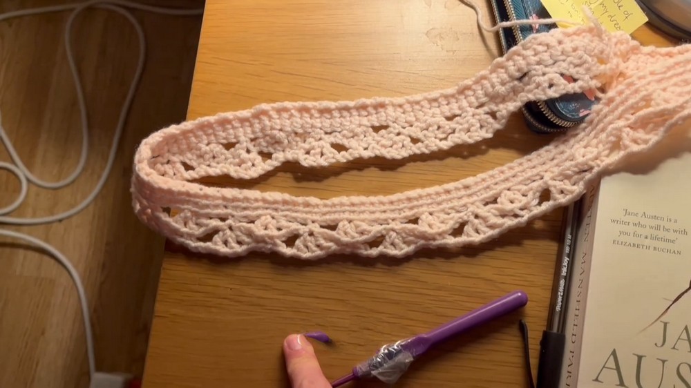 Once that’s ready, switch to the lace shell stitch for the main body. This stitch combines single and double crochet techniques to create a textured, fan-like pattern. The key is to alternate between shell stitches and single stitches, forming a consistent and attractive design.