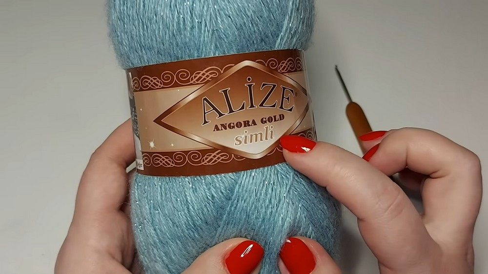 Yarn: Alize Angora Gold Simli (75% Acrylic, 20% Wool, 5% Metallic; 100g/500m).