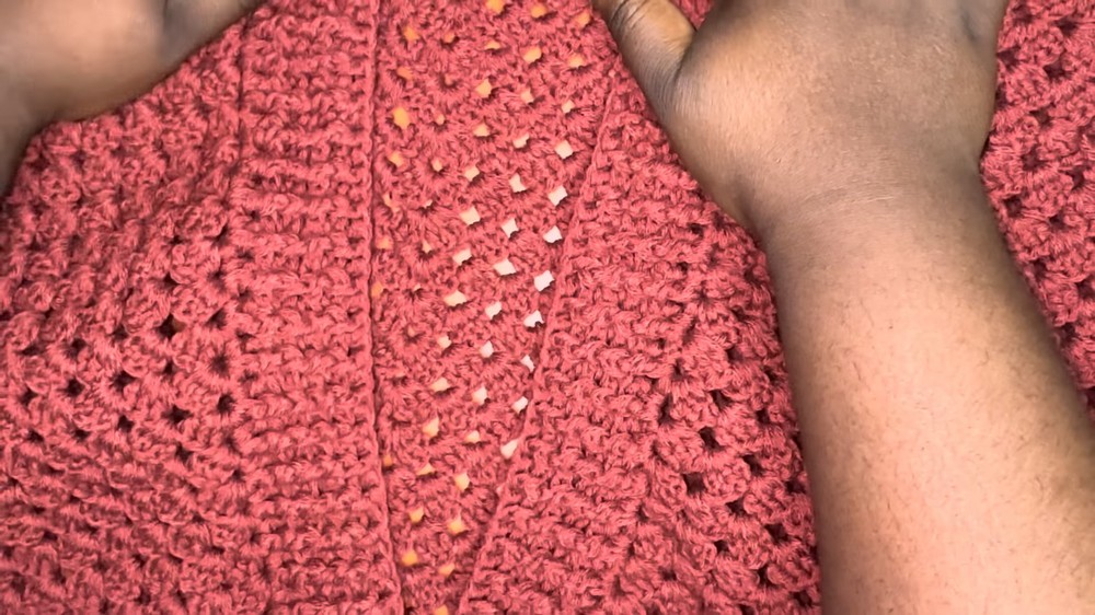1. One-Triangle Design: The cardigan's structure revolves around crocheting just one large triangle.