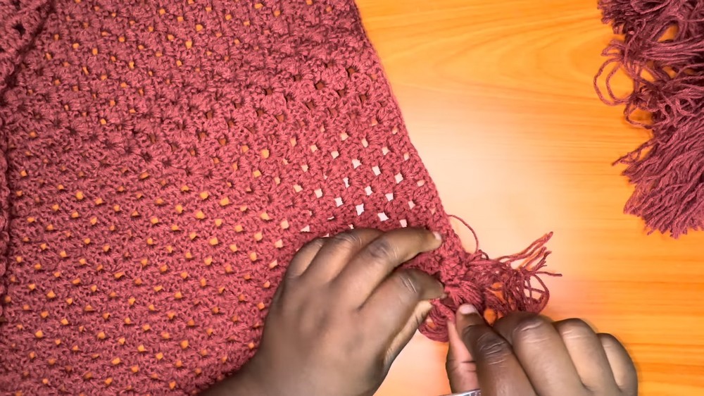 • The creator placed fringes every alternate stitch for a dense yet balanced look.