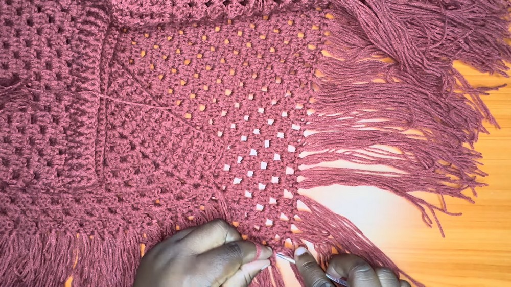 This gorgeous cardigan, built from a single triangle, is an excellent project to enhance your crochet skills. Its customizable design ensures it fits all sizes, while the ribbing and fringe add a beautiful finishing touch. The step-by-step process makes it easy to follow, and the final result is a functional and fashionable addition to your wardrobe.