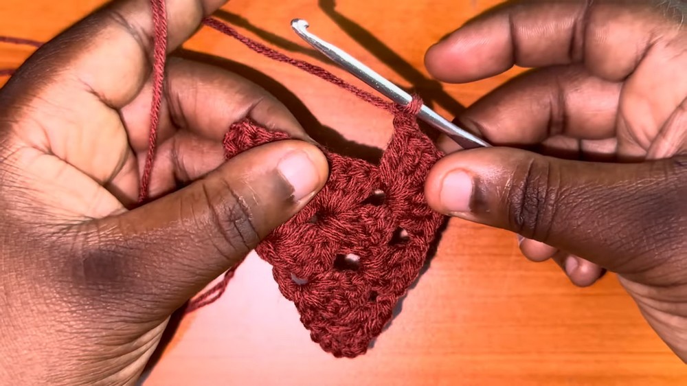 • At the beginning of each row, chain four (counts as one double crochet and chain one).
