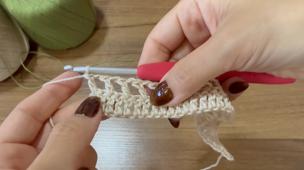 - Test the net stitch on a swatch to get comfortable with creating consistent spaces.