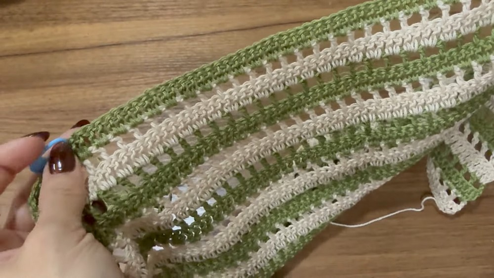 To finish, work single or slip stitches along the edges to add a clean finish. Blocking the vest once completed ensures the stitches lay flat and smooth for a professional look.