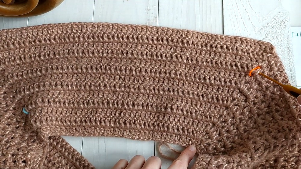 Neck Rise (Росток/Short Rows): Work back and forth for 4-5 cm along the back neck section before joining the full round to create a proper fit and neck shaping.