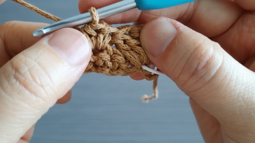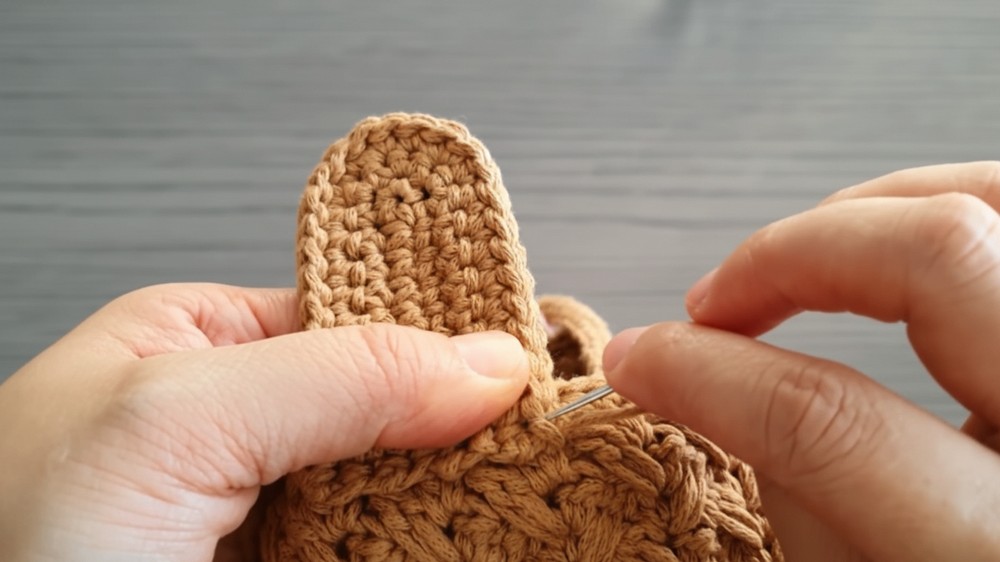 The tutor advises that you always turn your work every row or round (after the first body round) to ensure you maintain the correct zig-zag pattern. When beginning the body rounds, pull the first chain stitch up about 1cm to create a loose start, making the final slip stitch and subsequent turn easier. Do not immediately weave in the tail on the inside of the bag, as this strand helps you easily identify the inside/turning side of the work.