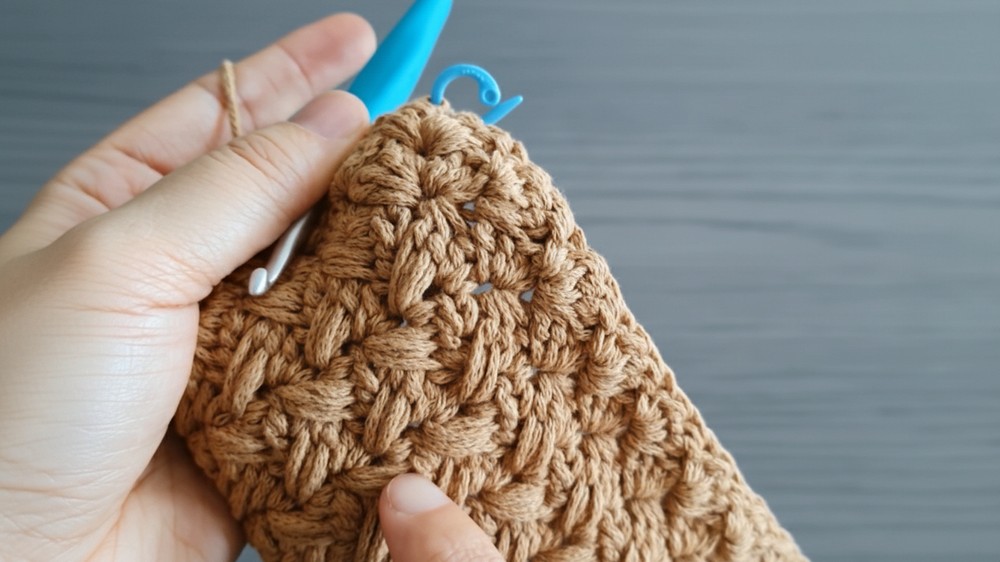 Always pay close attention to the stitch placement for the cluster/spike stitch pattern. Ensure you work the cluster into the correct stitch of the previous row or two rows below, pulling up the loop to about 1cm for a crisp diagonal line.