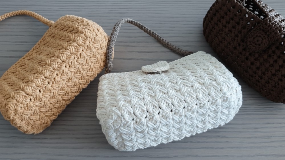 You have successfully completed your unique Four Seasons Mini Hobo Bag. Its special stitch pattern and square-based structure make it a delightful, practical accessory ready for everyday use.