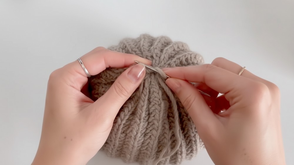 Finally, fasten off and weave in the ends for a neat, finished look. This hat offers handmade warmth that is cozy, versatile, and effortlessly charming.