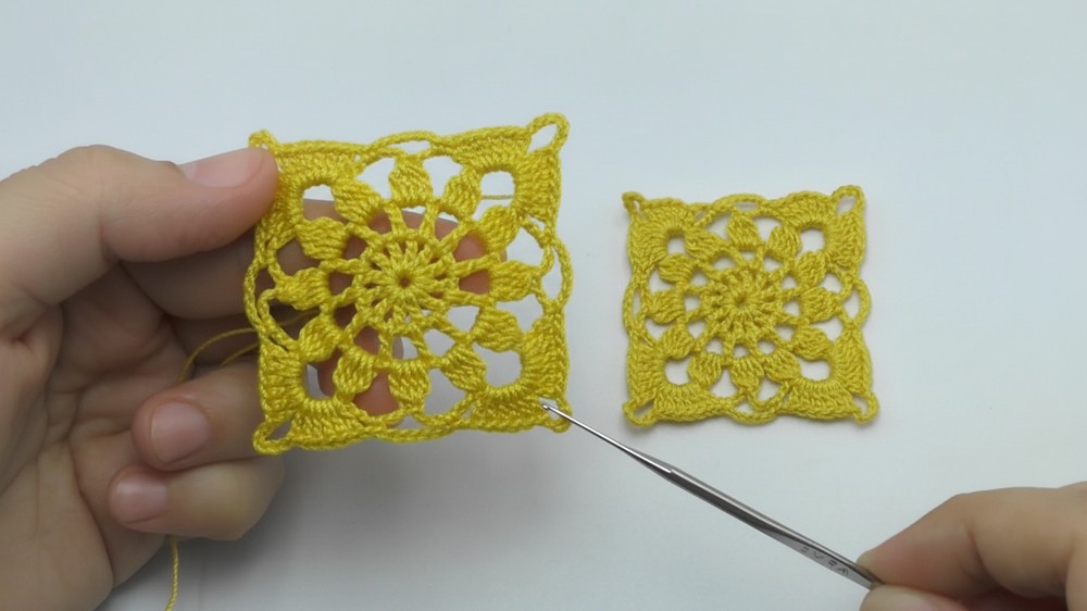 Simple Join-As-You-Go: The joining process is simple, using Chain 3 spaces and Slip Stitches, integrating the squares during the final working row of the new motif.