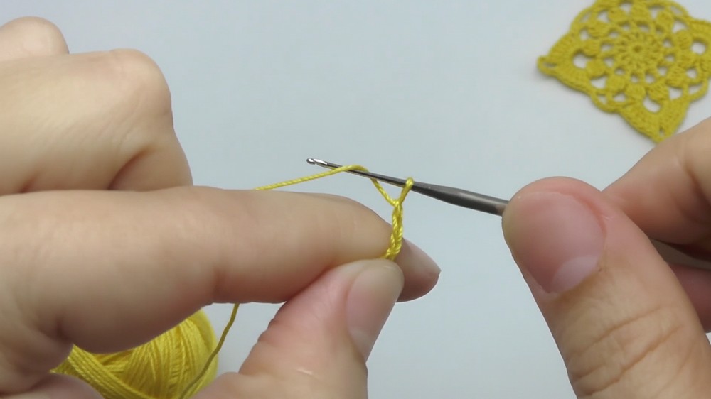 Chain Transition: A Chain of 30 stitches connects one motif's corner directly to the next, forming the foundation for the new motif.
