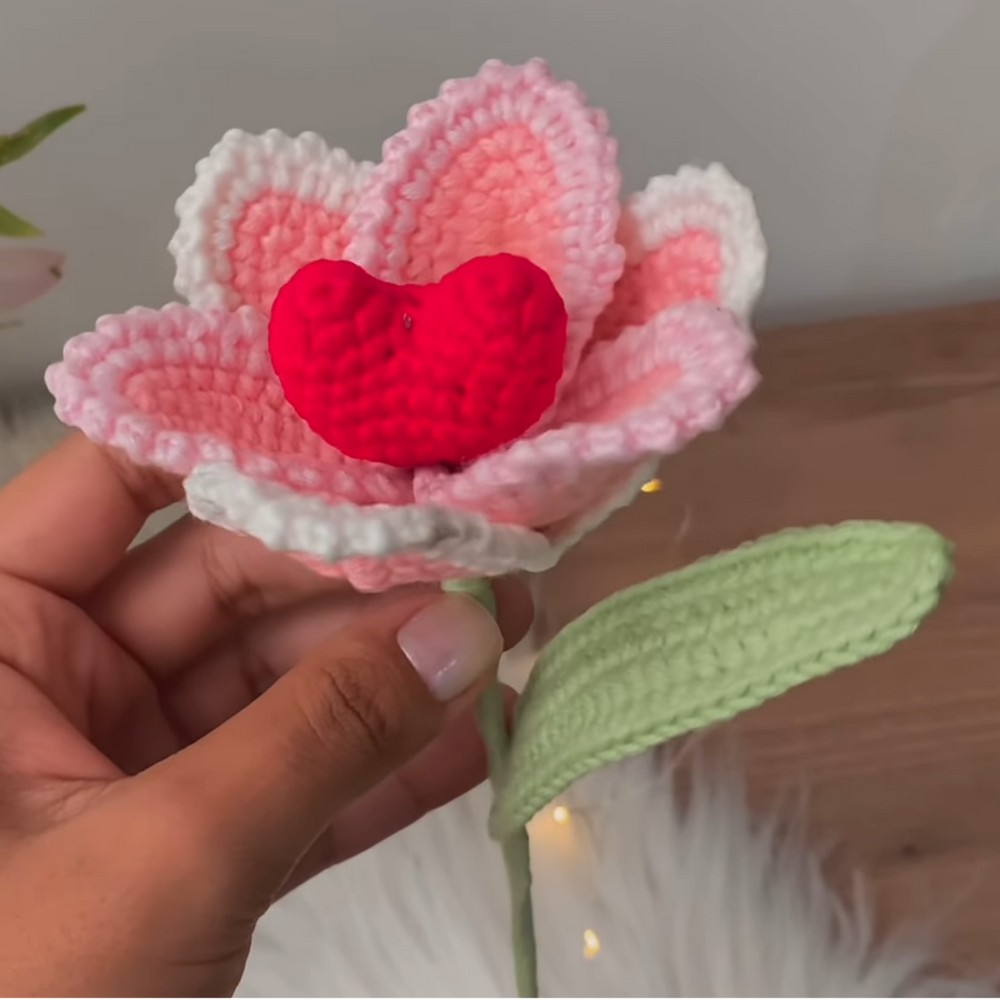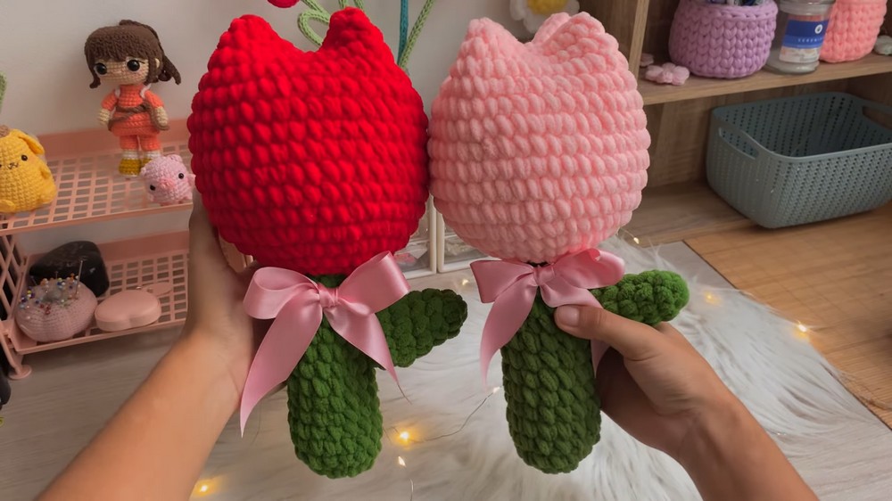 In this tutorial, Crochetlove shows how to make a Giant "Viral" Tulip using chenille yarn. These oversized flowers have become a trend for gift-giving, particularly for San Valentín (Valentine's Day), due to their soft, plush appearance and impressive size.