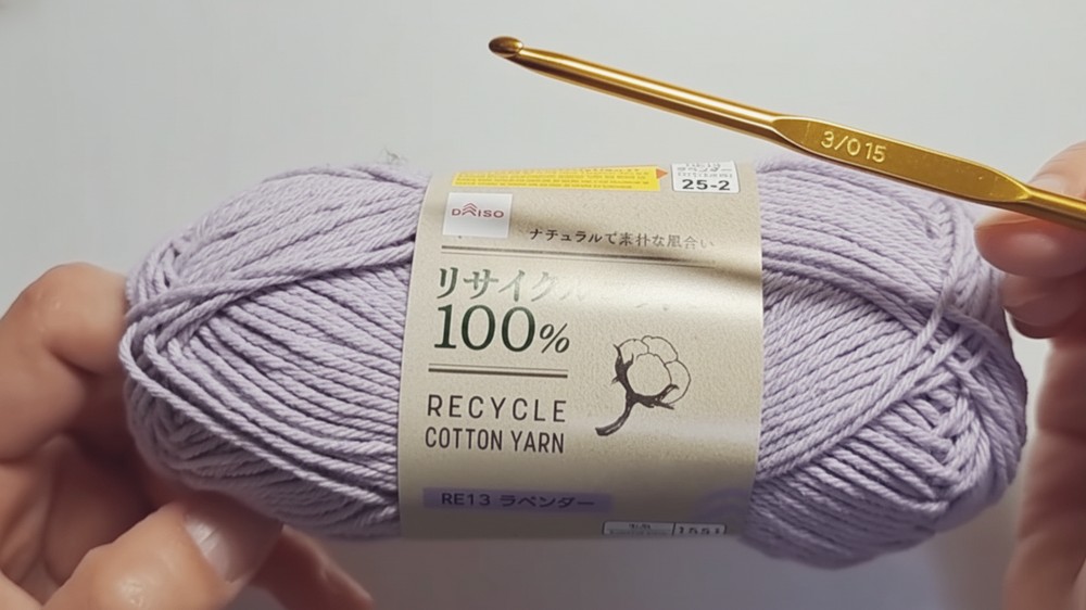 Yarn: 6 skeins (approx. 225g) of Daiso Recycle Cotton 100% in Lavender.