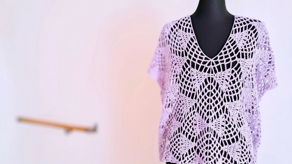 This summer knit combines the elegance of intricate lace with a beginner-friendly rectangular construction. By mastering the 10-row "bow" repeat, you create a garment that is both functional and beautiful. The final result is a versatile, oversized top that allows for excellent airflow, making it a staple piece for any handmade summer wardrobe.