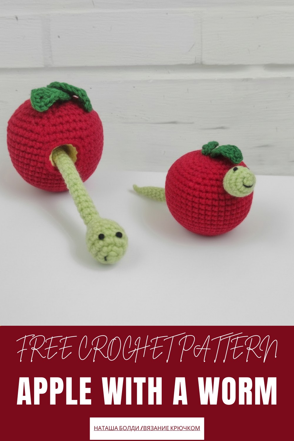 Crochet Apple with a Worm