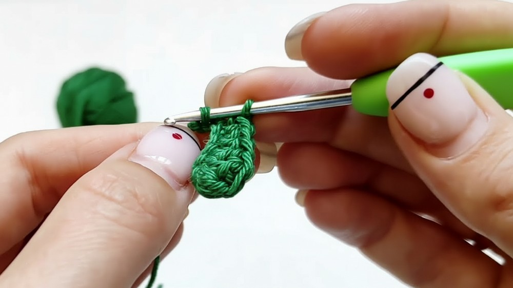 • Shaped Leaves: The dark green leaves are crocheted using a combination of stitch heights (single crochet, half-double crochet, and double crochet) to achieve a natural, realistic leaf shape.