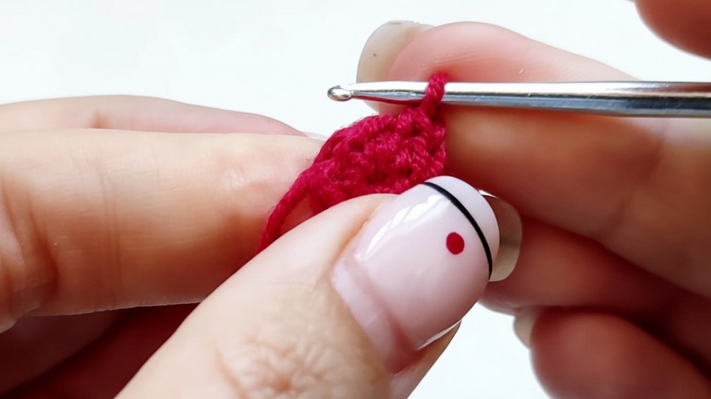 • Use a Tight Decrease Method: For the apple body's decreases, use a method that hides the stuffing. The tutor suggests inserting the hook into the front loop of the first stitch and then both loops of the second stitch to create a very tight closure.