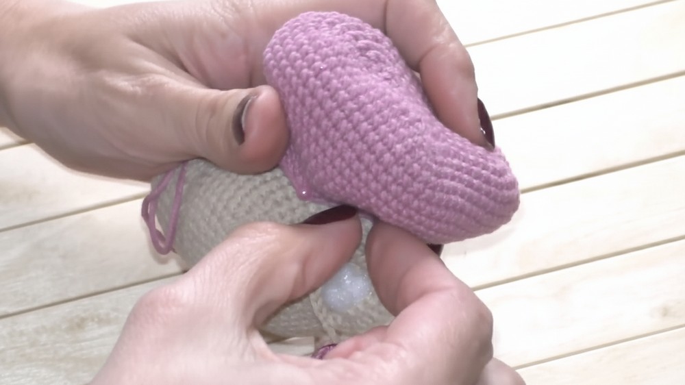 Tools: Large needle, glue, scissors, and a stitch marker.