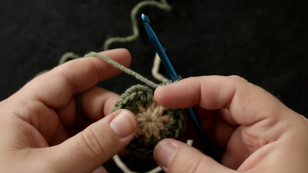 - Pull the yarn through, thread it onto a darning needle, and sew it into the first stitch seamlessly to avoid a visible knot.