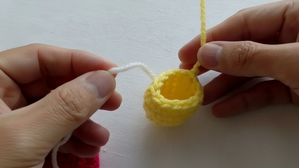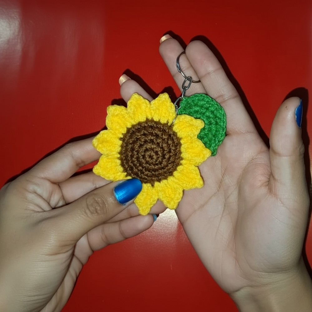 The finished flower piece can be used as a decoration on bags, hats, or scarves, or even added to a bouquet that never wilts. Its bright, layered form brings a cheerful touch to any project, and seeing each stitch come together makes it fun to work on.