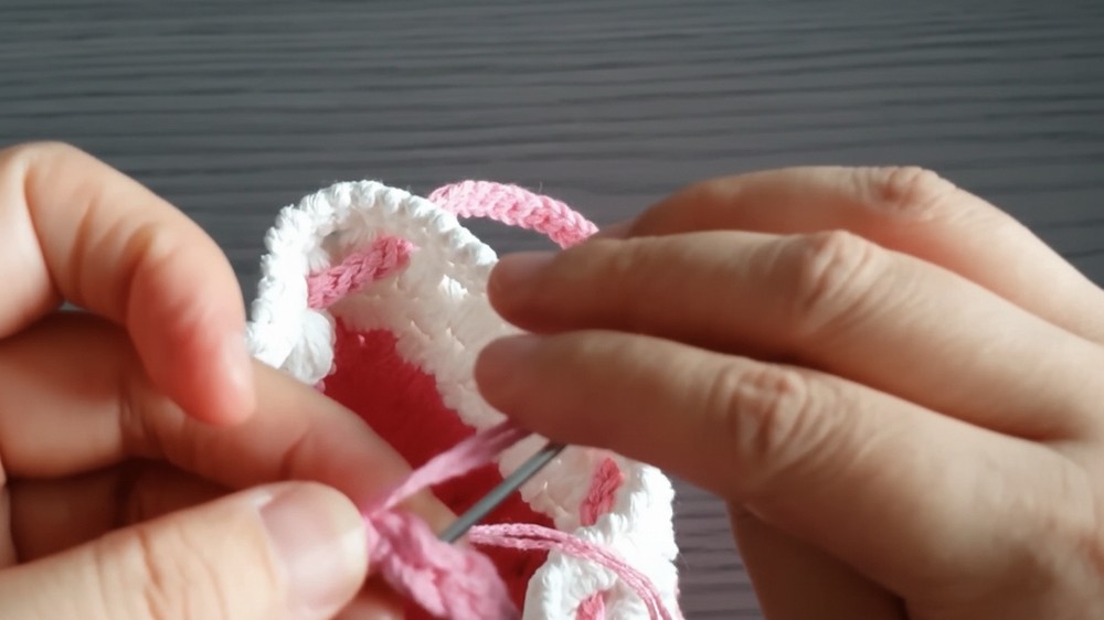 Puff Stitch Height: Maintain a consistent height of approximately 2 cm when pulling up the loops for each Puff Stitch. This uniformity ensures a neat, even appearance across the entire bag.