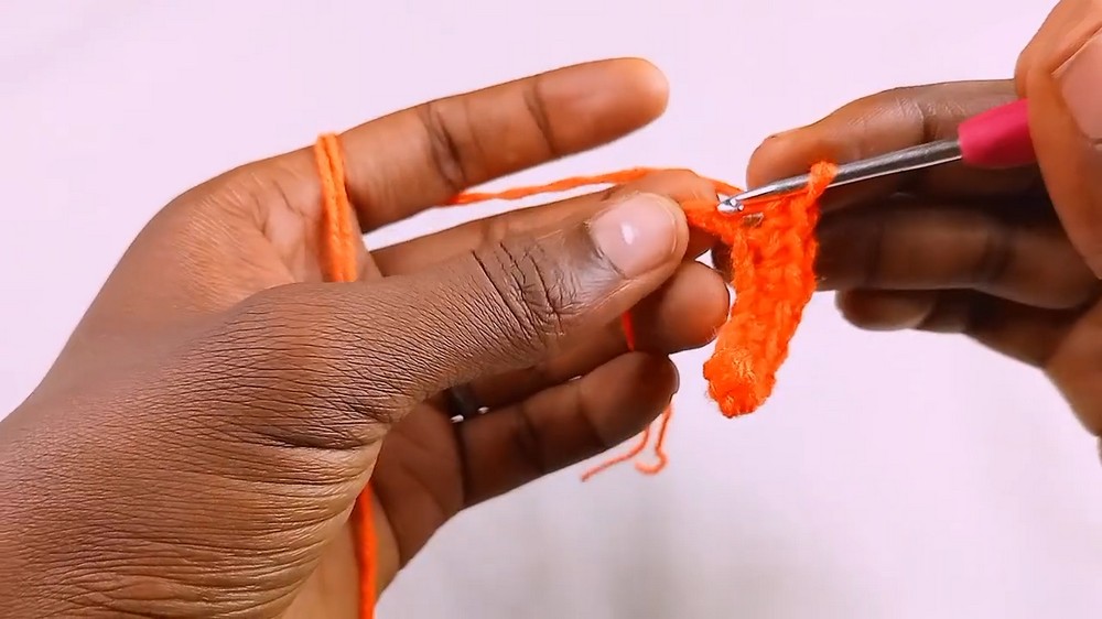 This pattern begins with a slip knot and 10 chain stitches to form the foundation. Afterward, single crochet stitches are worked into the back loops only, building rows to form the brim.