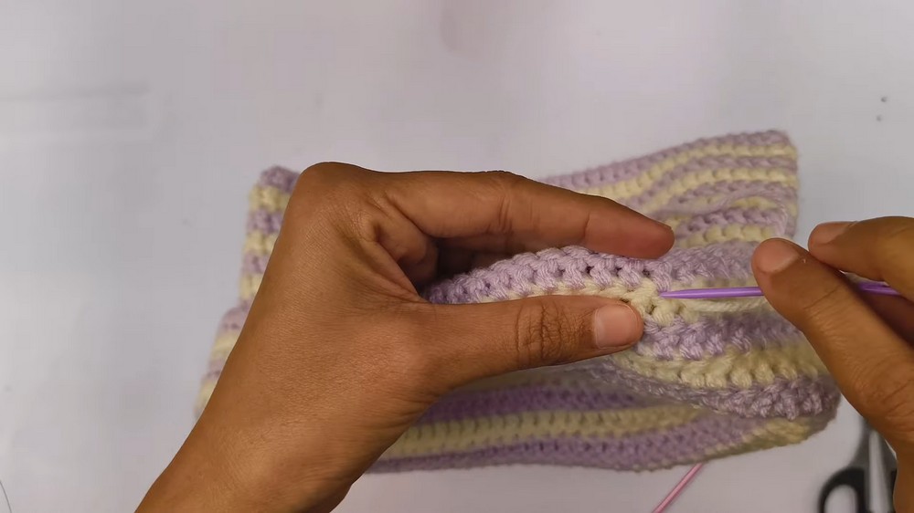 A smooth slip stitch transition between rounds helps maintain uniformity in the beanie’s overall design. Alternate colors for added interest, securing the yarn tightly when transitioning to avoid gaps.