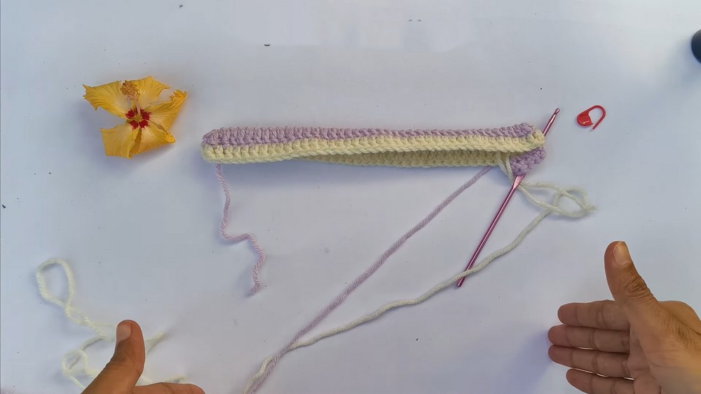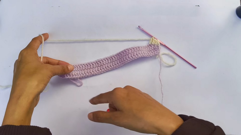 For instance, if the head size is 54 cm, begin a chain of approximately 27 cm, adding 2 to 3 extra chains for flexibility. Begin with a slip knot and work single or double crochet stitches, starting in the third chain from the hook after skipping the first two.