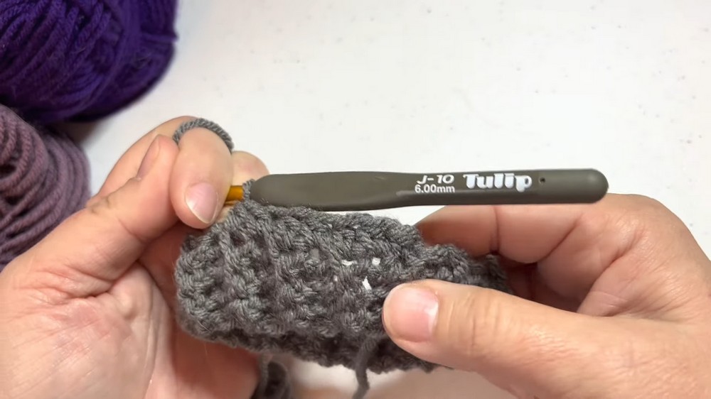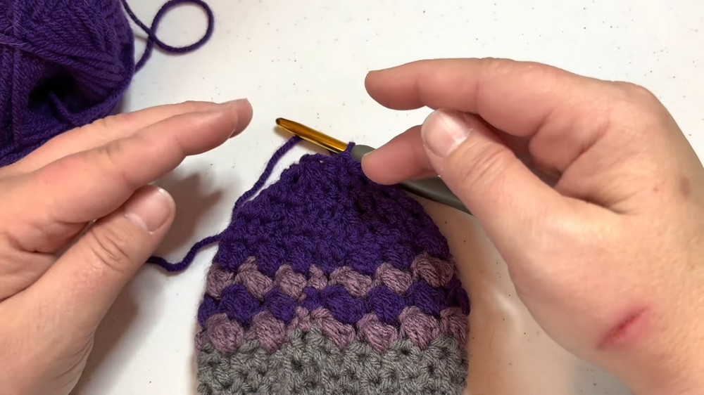 - Continue puff stitch rounds until the hat measures between 7-10 inches in length, depending on preference (7–8 inches for a fitted beanie, 10+ for a slouchy style).