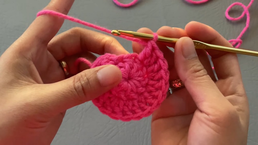 The pattern begins by forming the crown using a slip knot and chaining four to create a basic ring, followed by ten double crochets into the center.