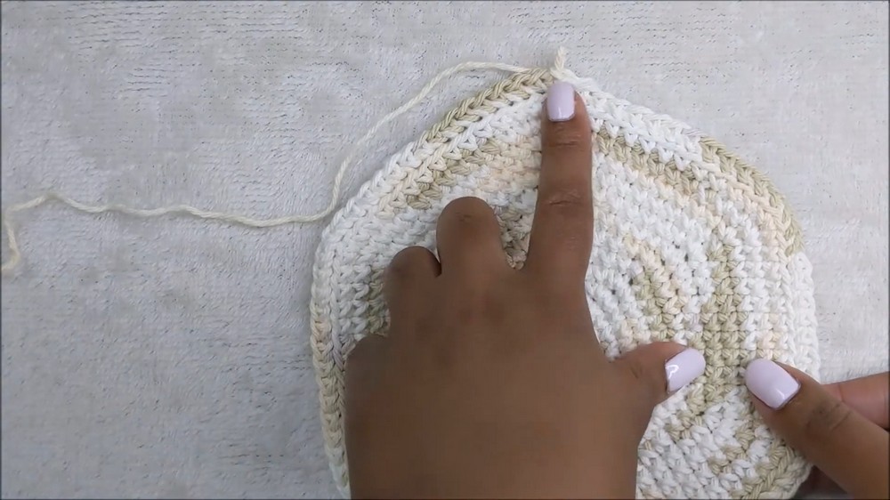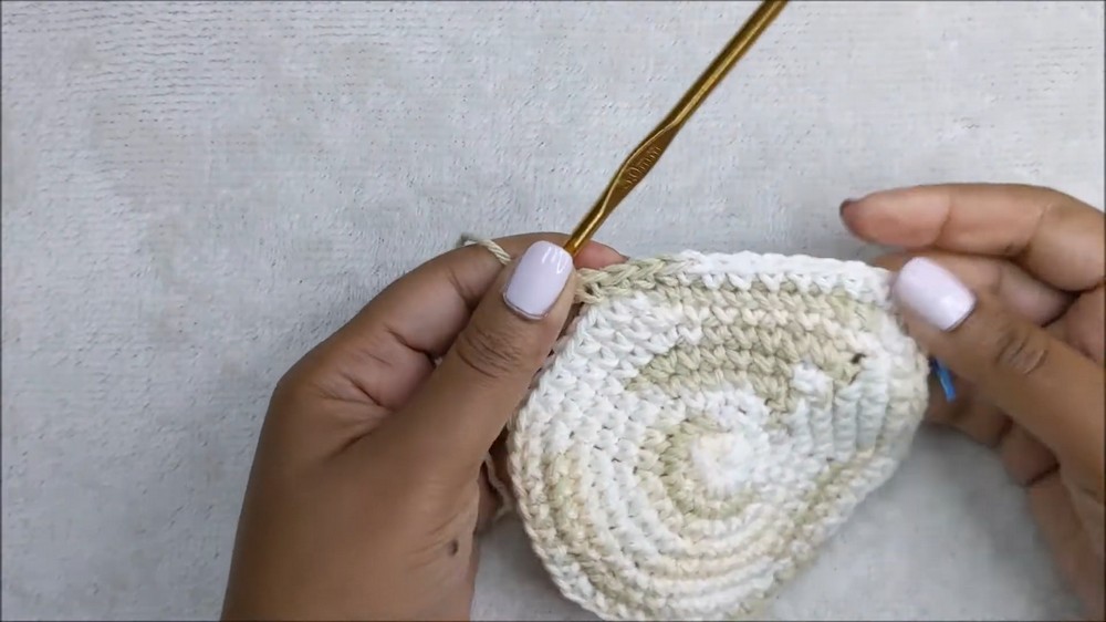 Around the 14th round, working through the back loops creates a structured edge, setting the crown apart from the body of the hat. The body follows with straightforward single crochet rounds, requiring no more increases.
