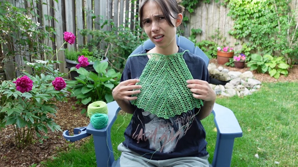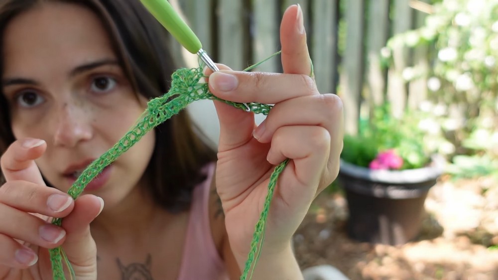 The top itself is worked directly from this foundation chain, saving you time by eliminating the need to join separate pieces later on. The lace pattern is shaped by strategically increasing stitches at the center of every row, allowing the halter to expand and form its signature silhouette.