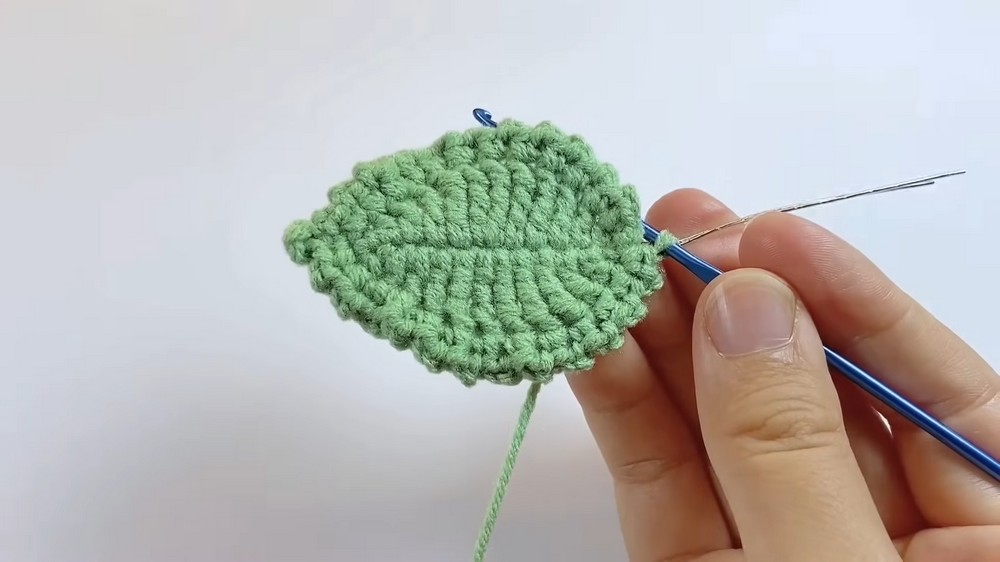 When working with crochet wire in the leaves, wrap the yarn snugly around the wire for a natural look. This will give your leaves a clean finish and prevent the wire from slipping out.