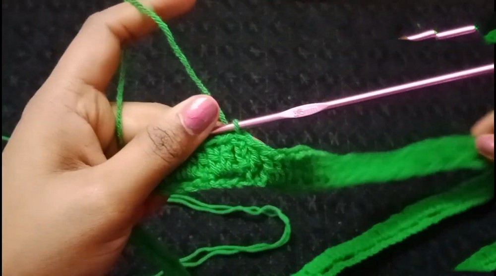 - Use Contrasting Yarn: (The video uses red yarn) Slip stitch to start and create chain loops for a decorative edge.