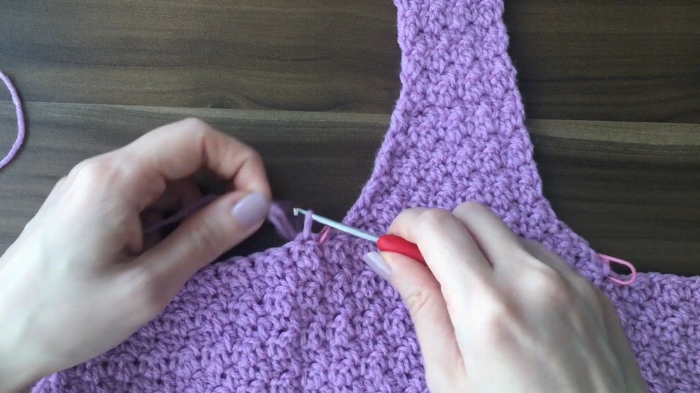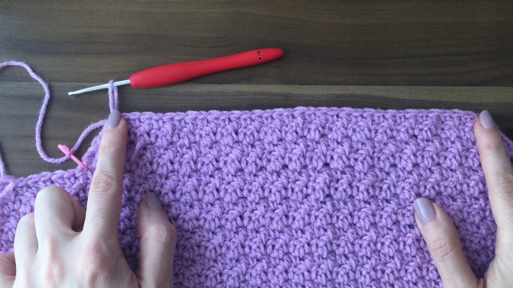 Transition to the main body by working a "lemon peel" stitch, alternating between one double crochet and one single crochet to build a rich texture for twenty-seven centimeters.