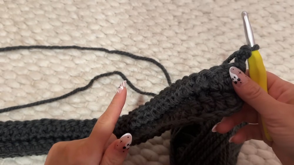 - Crochet for 23 rows for the back, considering your chosen crop length.