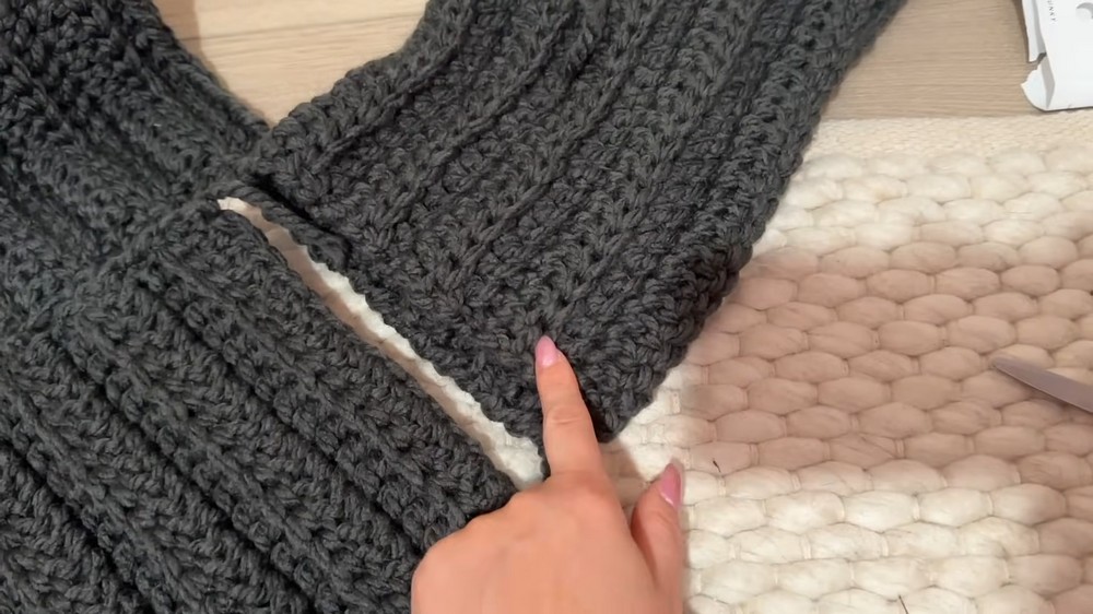 - Work a row of single crochet evenly around the sleeve’s wrist edge.