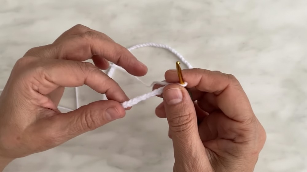 - Begin with 79 chains (adjust based on desired size). For the instructor's tension, this measures 30 cm.