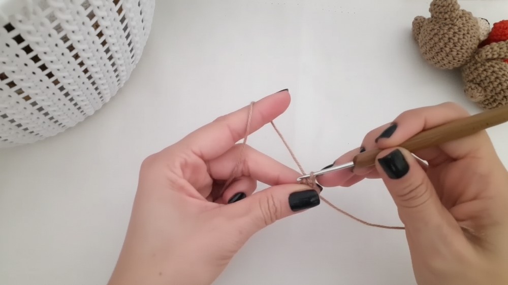 • Yarn: Amigurumi yarn in your main color (for the bear), contrasting color (for the muzzle), and accent color (for the heart and embroidery). The tutor also uses Princesa Moda or Amigurumi yarn for the heart's embroidered initial.