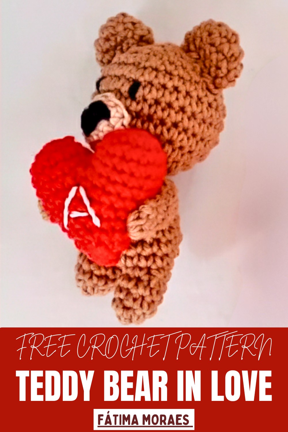 This project is for Intermediate crocheters. You must successfully manage small-round amigurumi pieces (ears, muzzle, heart half-spheres), join pieces accurately, and perform clean assembly and embroidery work.
