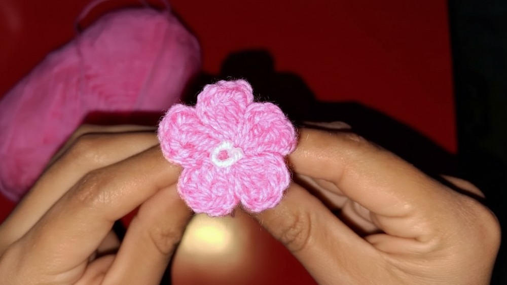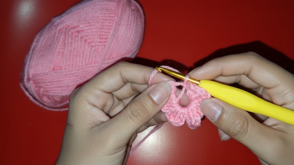 Making these flowers starts with a small loop of yarn, often called a “magic ring,” where the first stitches are joined together so the flower has a neat center.