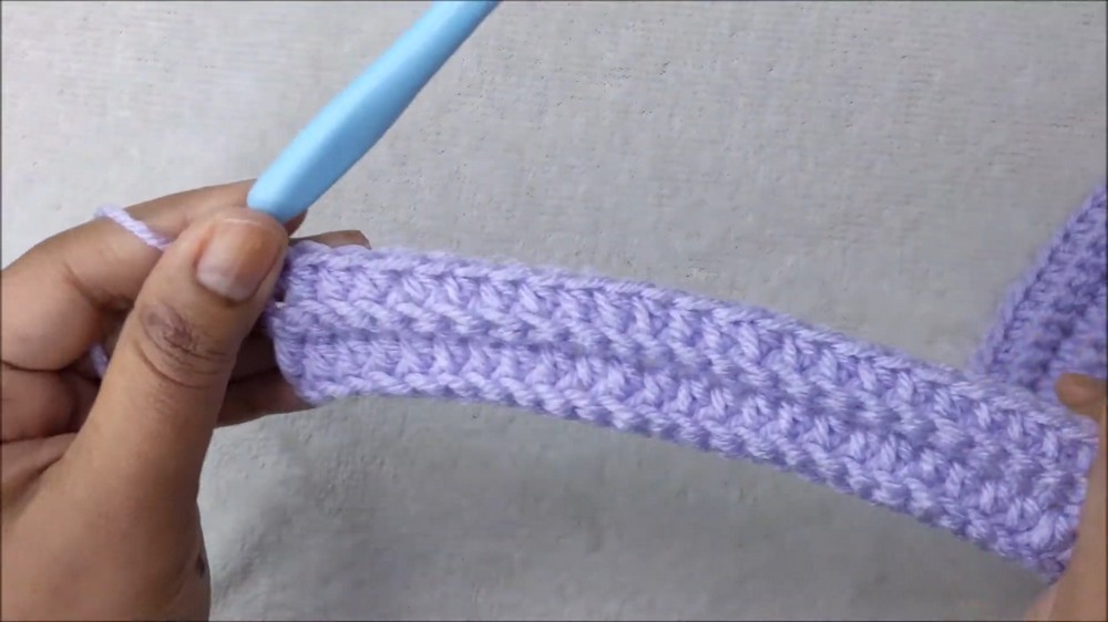 Start by chaining enough stitches to match your head’s circumference (around 70 chains for adults) and follow with alternating rows of half-double crochet and single crochet in the back loops.